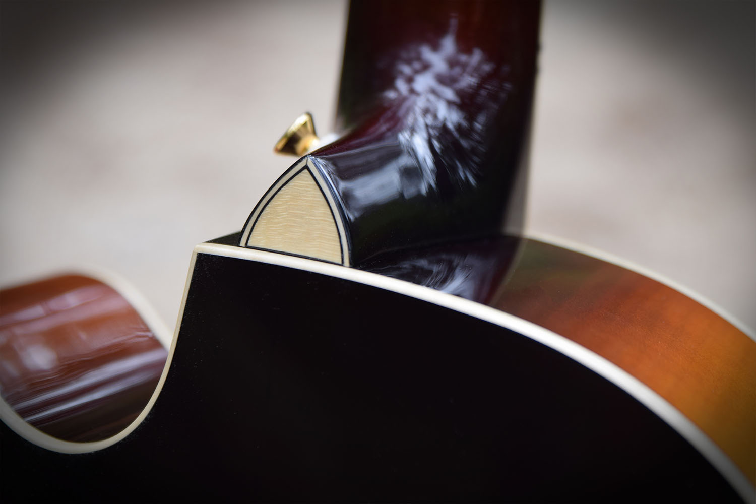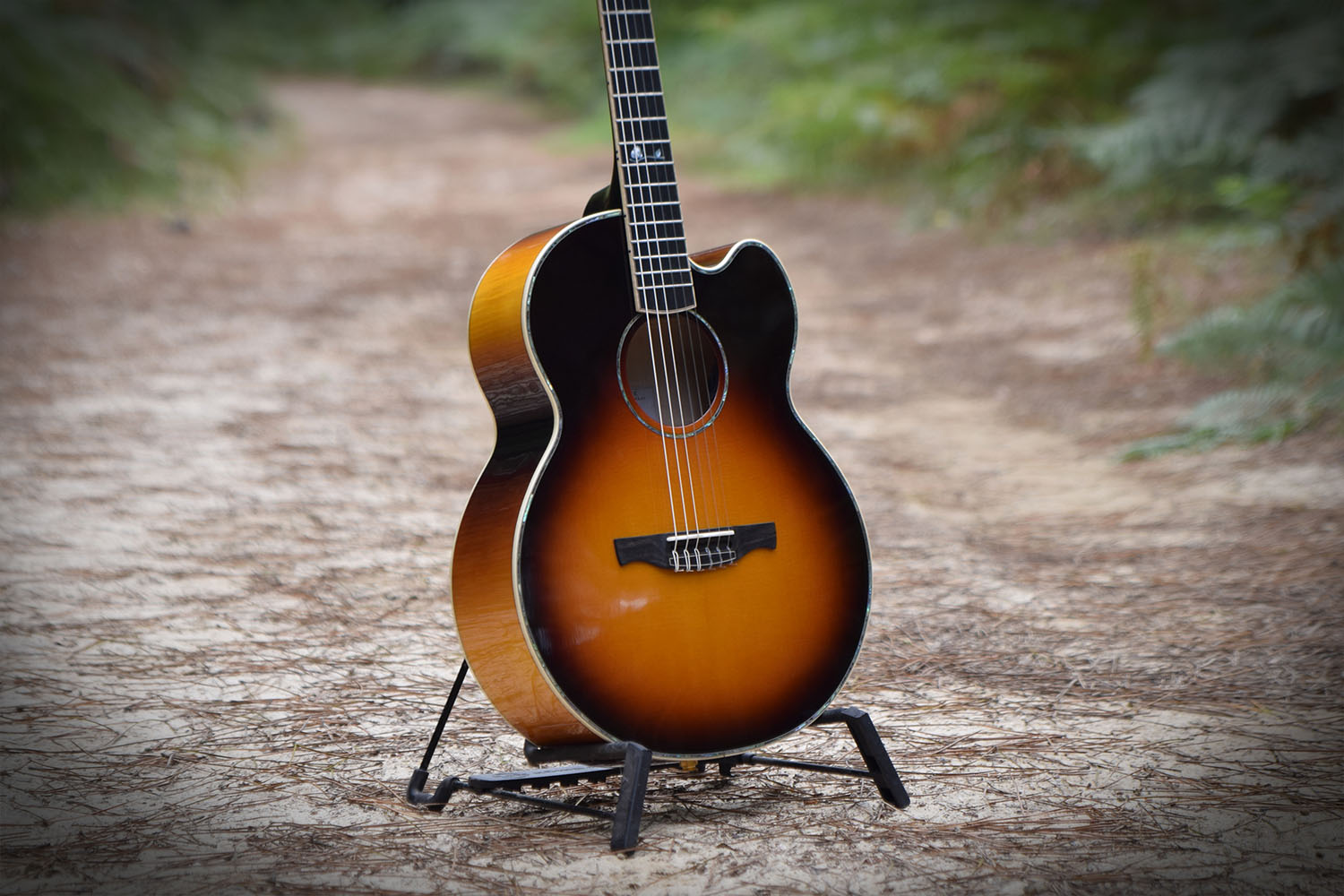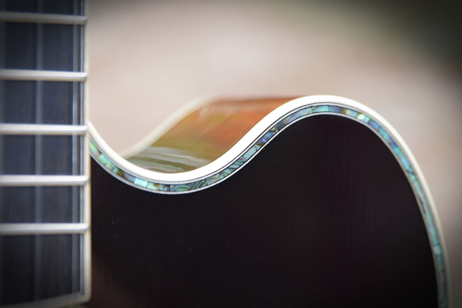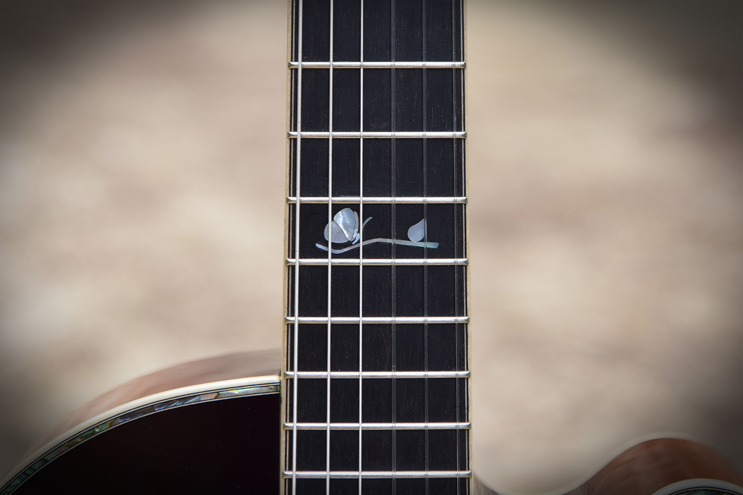 Bien sûr, la guitare possède une jointure à la 14ème case, et un barrage en X, la rapprochant d'une folk. Elle est équipée d'une Fishman Matrix Blend, et est denenue une des guitares principales de ce tour de chant!